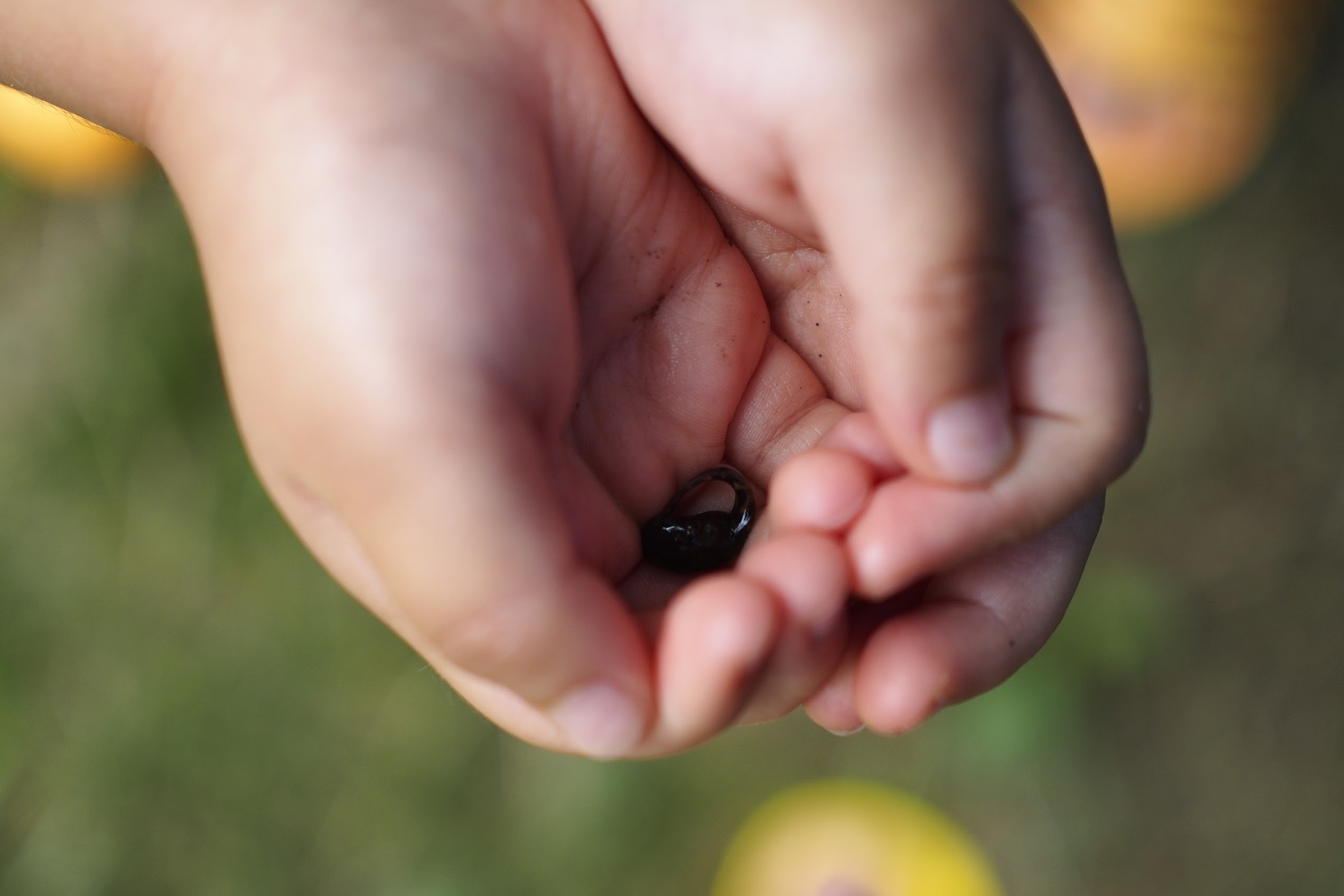 オタマジャクシを捕まえて触らせた。